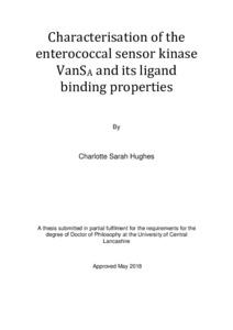 Hughes, Charlotte Sarah (2018) Characterisation of the enterococcal sensor kinase VanSA and its ligand binding properties. Doctoral thesis, University of Central Lancashire.