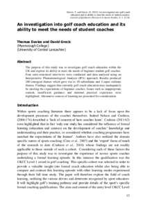 An investigation in to golf coach education and its ability to meet the needs of student coaches.