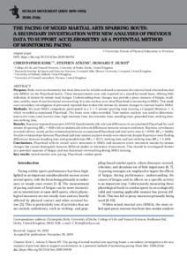 The pacing of mixed martial arts sparring bouts: A secondary investigation with new analyses of previous data to support accelerometry as a potential method of monitoring pacing.
