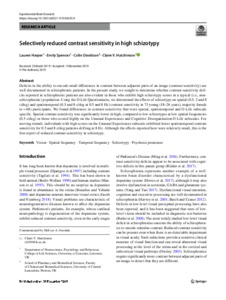 Harper, Lauren, Spencer, Emily, Davidson, Colin orcid iconORCID: 0000-0002-8180-7943 and Hutchinson, Claire V. (2020) Selectively reduced contrast sensitivity in high schizotypy. Experimental Brain Research, 238 . pp. 51-62. ISSN 0014-4819