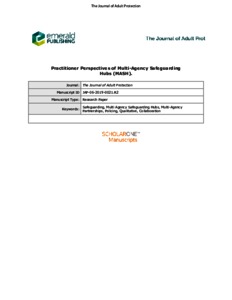Shorrock, Sarah, Mcmanus, Michelle and Kirby, Stuart (2019) Practitioner perspectives of multi-agency safeguarding hubs (MASH). The Journal of Adult Protection . ISSN 1466-8203
