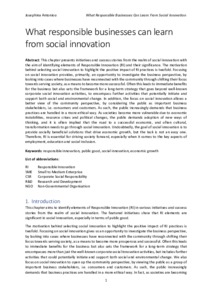 This chapter presents initiatives and success stories from the realm of social innovation with the aim of identifying elements of Responsible Innovation (RI) and their significance. The motivation behind selecting social innovation to highlight the positive impact of RI practices is twofold. Focusing on social innovation provides, primarily, an opportunity to investigate the business perspective, by looking into cases where businesses have reconnected with the community through shifting their focus towards serving society, as a means to become more successful. Often this leads to immediate benefits for the business but also sets the framework for a long-term strategy that goes beyond well-known corporate social innovation activities, to encompass further activities that potentially initiate and support both social and environmental change. In addition, the focus on social innovation allows a better view of the community perspective, by considering the public as important business stakeholders, i.e. consumers and customers. As such, the public increasingly demands that business