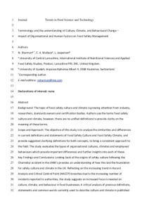 Terminology and the understanding of culture, climate, and behavioural change – Impact of organisational and human factors on food safety management.