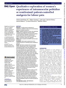 Qualitative exploration of women’s experiences of intramuscular pethidine or remifentanil patient-controlled analgesia for labour pain.