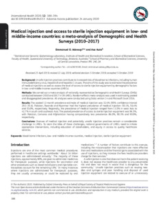 Medical injection and access to sterile injection equipment in low- and middle-income countries: a meta-analysis of Demographic and Health Surveys (2010-2017).