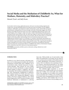 Tizard, Hannah Rachel and Pezaro, Sally (2019) Social Media and Mediation of Childbirth: So, What for Mothers, Maternity, and Midwifery Practice? International Journal of Childbirth, 9 (2). pp. 69-79. ISSN 2156-5287