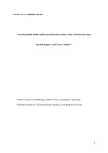 The Sexual Risk Order and Sexual Harm Prevention Order: the first two years.