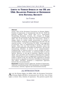 Limits to terror speech in the UK and USA: balancing freedom of expression with national security.