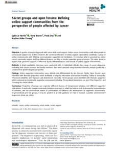Secret Groups and Open Forums: Defining Online Support Communities from the Perspective of People Affected by Cancer.