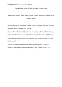Conclusions: There are meaningful differences in characteristics associated with location of cut. We recommend that all young people who present to hospital following self-harm receive a psychosocial assessment, in line with NICE guidance.