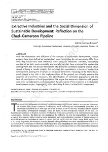 Germond-duret, Celine (2011) Extractive Industries and the Social Dimension of Sustainable Development: Reflection on the Chad-Cameroon Pipeline. Sustainable Development . ISSN 0968-0802