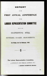 Labour Party, National Executive Committee (1901) Report of the Conference on Labour Representation Committee 1901. In: Report of the Conference on Labour Representation Committee 1901, 1 February 1901, Manchester, England.