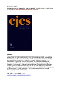Fragments of Time and Memory: Matter, Media and the Modern Auditory World.