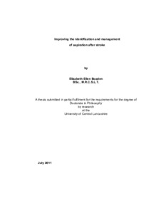 Boaden, Elizabeth L (2011) Improving the identification and management of aspiration after stroke. Doctoral thesis, University of Central Lancashire.