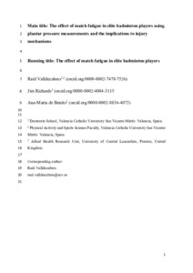The effect of match fatigue in elite badminton players using plantar pressure measurements and the implications to injury mechanisms.