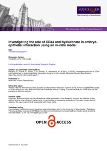 Investigating the role of CD44 and hyaluronate in embryo-epithelial interaction using an in vitro model.