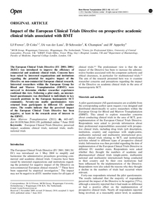 The European Clinical Trials Directive (EU 2001; 2001/20/EC) was introduced to improve the efficiency of commercial and academic clinical trials. Concerns have been raised by interested organizations and institutions regarding the potential for negative impact of the Directive on non-commercial European clinical research. Interested researchers within the European Group for Blood and Marrow Transplantation (EBMT) were surveyed to determine whether researcher experiences confirmed this view. Following a pilot study, an internet-based questionnaire was distributed to individuals in key research positions in the European haemopoietic SCT community. Seventy-one usable questionnaires were returned from participants in different EU member states. The results indicate that the perceived impact of the European Clinical Trials Directive has been negative, at least in the research areas of interest to the EBMT.