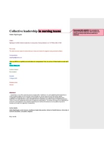 Nightingale, Adele (2020) Implementing collective leadership in healthcare organisations. Nursing standard, 35 (2). ISSN 0029-6570