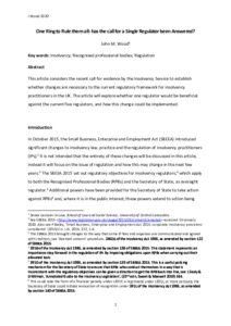 This article considers the recent call for evidence by the Insolvency Service to establish whether changes are necessary to the current regulatory framework for insolvency practitioners in the UK. The article will explore whether one regulator would be beneficial against the current five regulators, and how this change could be implemented.