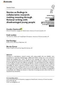 Stories as findings in collaborative research: making meaning through fictional writing with disadvantaged young people.