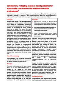 An evidence summary based on the systematic review: Baatiema L, Otim ME, Mnatzaganian G, de-Graft Aikins A, Coombes J, Somerset S. Health professionals' views on the barriers and enablers to evidence-based practice for acute stroke care: a systematic review. Implement Sci. 2017;12:74. 10.1186/s13012-017-0599-3