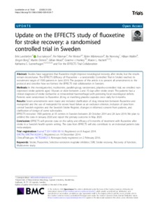 Lundstrom, Erik, Isaksson, Eva, Nasman, Per, Wester, Per, Martensson, Bjorn, Norrving, Bo, Wallen, Hakan, Borg, Jorgen, Dennis, Martin et al (2020) Update on the EFFECTS study of fluoxetine for stroke recovery: a randomised controlled trial in Sweden. Trials, 21 (233).