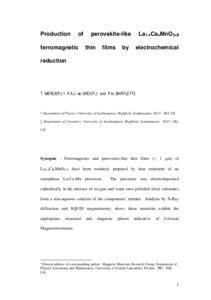Production of perovskite-like La(1-x)Ca(x)MnO(3+delta) ferromagnetic thin films by electrochemical reduction.