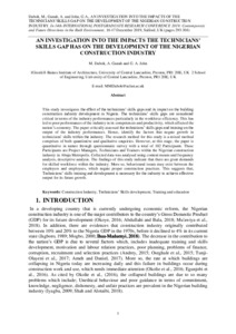 AN INVESTIGATION INTO THE IMPACTS OF THE TECHNICIANS’ SKILLS GAP ON THE DEVELOPMENT OF THE NIGERIAN CONSTRUCTION INDUSTRY.