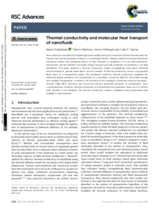 The developed model for thermal conductivity of nanofluids integrates the interfacial Kapitza resistance, the characteristics of the nanolayer, convective diffusion and surface energy with capillary condensation.