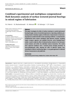 Combined experimental and multiphase computational fluid dynamics analysis of surface textured journal bearings in mixed regime of lubrication.