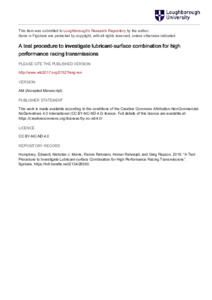 A test procedure to investigate lubricant-surface combinations for high-performance racing transmissions
