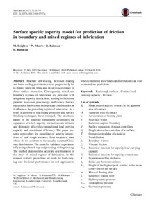 Surface specific asperity model for prediction of friction in boundary and mixed regimes of lubrication.