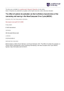 The effect of cylinder de-activation on thermo-friction characteristics of the connecting rod bearing in the New European Drive Cycle (NEDC).