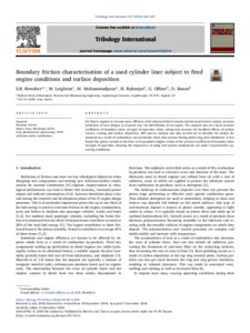 Boundary friction characterisation of a used cylinder liner subject to fired engine conditions and surface deposition.
