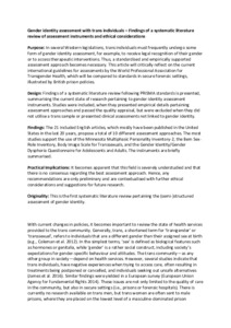 Gender identity assessment with trans individuals – findings of a systematic literature review of assessment instruments and ethical considerations.