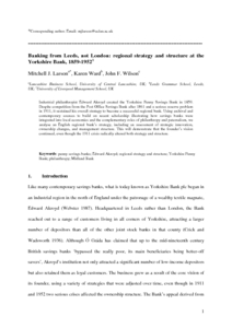 Larson, Mitchell Jonathan orcid iconORCID: 0000-0002-5506-0815, Ward, Karen and Wilson, John F. (2010) Banking from Leeds, not London: regional strategy and structure at the Yorkshire Bank, 1859–1952. Accounting, Business & Financial History, 20 (2). pp. 117-133. ISSN 0958-5206