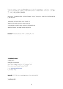 Morris, A.D., Elsayed, M.E., Ponnusamy, A., Rowbottom, A., Martin, Francis L orcid iconORCID: 0000-0001-8562-4944, Geetha, D. and Dhaygude, A.P. (2020) Treatment Outcomes of Anti-Neutrophil Cytoplasmic Autoantibody-Associated Vasculitis in Patients Over Age 75 Years: A Meta-Analysis. American Journal of Nephrology . ISSN 0250-8095