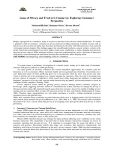 Issues of privacy and trust in e-commerce: Exploring customers’ perspective.