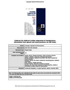 Evidence for children’s online integration of simultaneous information from speech and iconic gestures: an ERP study.