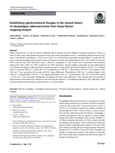 Maitra, Ishaan, Medeiros-De-morais, Camilo De lelis orcid iconORCID: 0000-0003-2573-787X and Martin, Francis L orcid iconORCID: 0000-0001-8562-4944 (2020) Establishing spectrochemical changes in the natural history of oesophageal adenocarcinoma from tissue Raman mapping analysis. Analytical and Bioanalytical Chemistry, 412 . pp. 4077-4087. ISSN 1618-2642