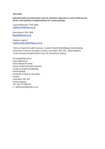 Williamson, Susan orcid iconORCID: 0000-0002-9635-4473, Beaver, Kinta orcid iconORCID: 0000-0002-6552-2323 and Langton, Stephen (2020) Exploring health care professionals views on alternative approaches to cancer follow-up and barriers and facilitators to implementation of a Recovery Package. European Journal of Oncology Nursing, 46 (10175). ISSN 1462-3889