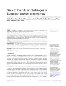 Originality/value–This trends paper provides five useful recommendations for the future of tourism inEurope, including: sustainable tourism development, investment in technology, effective tourismgovernance, enhance Europe’s overall destination brand and marketing strategy, and the need for newskills and training.
