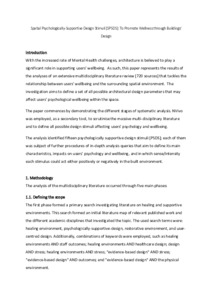 Mental Health problems are remarkably increasing in the UK, where people are facing di˙erent challenges day after day, including stresses from everyday life. Out of a deep belief that architecture can play a significant role in supporting users’ wellbeing, instead of augmenting their stresses, this paper analyzes an extensive multidisciplinary literature review, of 720 sources, from three di˙erent disciplines: psychology, medicine and architecture. The analyzed literature studies the relationship between users’ wellbeing and the surrounding spatial environment. The investigation aims to identify a set of possible architectural design parameters that can a˙ect users’ psychological wellbeing. The analysis identified fifteen spatial psychologically supportive design stimuli (PSDS); each of them was subject of further procedures of in-depth analysis queries that aim to define their main characteristics, impacts on users’ psychology and wellbeing, and their influences within the design of public buildings. The study aims to benefit the development of psychologically considerate built environment design, as well as identifying potential research routes for future spatial qualitative researches.