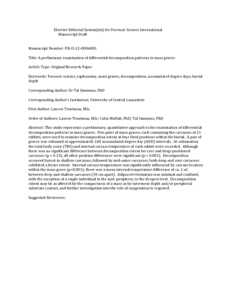 Troutman, Lauren, Moffatt, Colin and Simmons, Tal Linda Ileen (2014) A preliminary examination of differential decomposition patterns in mass graves. Forensic Science International, 59 (3). pp. 621-626. ISSN 0379-0738