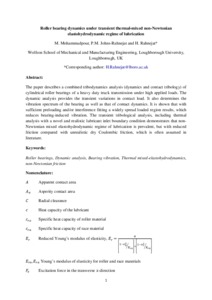 Roller bearing dynamics under transient thermal-mixed non-Newtonian elastohydrodynamic regime of lubrication.