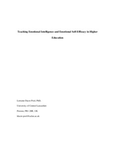 Dacre-Pool, Lorraine orcid iconORCID: 0000-0003-2049-8670 (2013) Teaching emotional intelligence and emotional self-efficacy in higher education. The Psychology of Education Review, 37 (2). pp. 26-32. ISSN 1463-9807