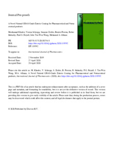 Khoder, Mouhamad, Schropp, Verena, Zeitler, Susanne, Pereira, Beatriz, Habashy, Rober, Royall, Paul G., Tzu-Wen Wang, Julie and Alhnan, Mohamed A (2020) A Novel Natural GRAS-Grade Enteric Coating for Pharmaceutical and Nutraceutical products. International Journal of Pharmaceutics, 584 . p. 119392. ISSN 0378-5173