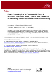 From cosmological to commercial form: A Buddhist theory of ‘form’, ‘space’ and ‘stream of re-becoming’ in mid-19th century Thai accounting.