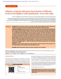 Introduction: The aim of this study was to compare the effect between different levels of ultrasonic tip activation on the depth of epoxy resin-based sealer (AH plus) dentinal tubules penetration.