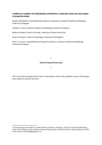 McClelland, Heather, Evans, Jonathan J., Nowland, Rebecca orcid iconORCID: 0000-0003-4326-2425, Ferguson, Eamonn and O'Connor, Rory C. (2020) Loneliness as a predictor of suicidal ideation and behaviour: a systematic review and meta-analysis of prospective studies. Journal of Affective Disorders, 274 . pp. 880-896. ISSN 0165-0327
